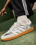 The Adidas Women’s Samba Cracked ‘Silver’ reimagines the iconic Samba silhouette with a modern, fashion-forward finish. Featuring a unique cracked-leather effect, this classic low-top sneaker blends heritage soccer style with contemporary streetwear appeal.